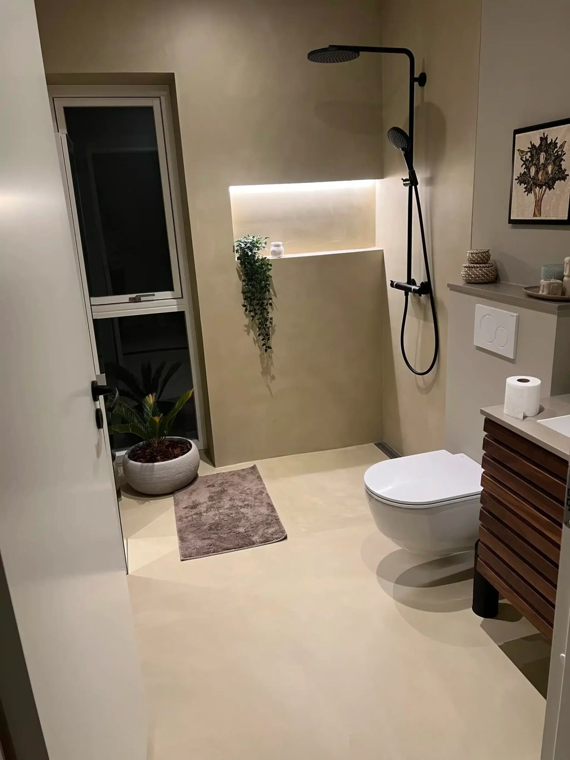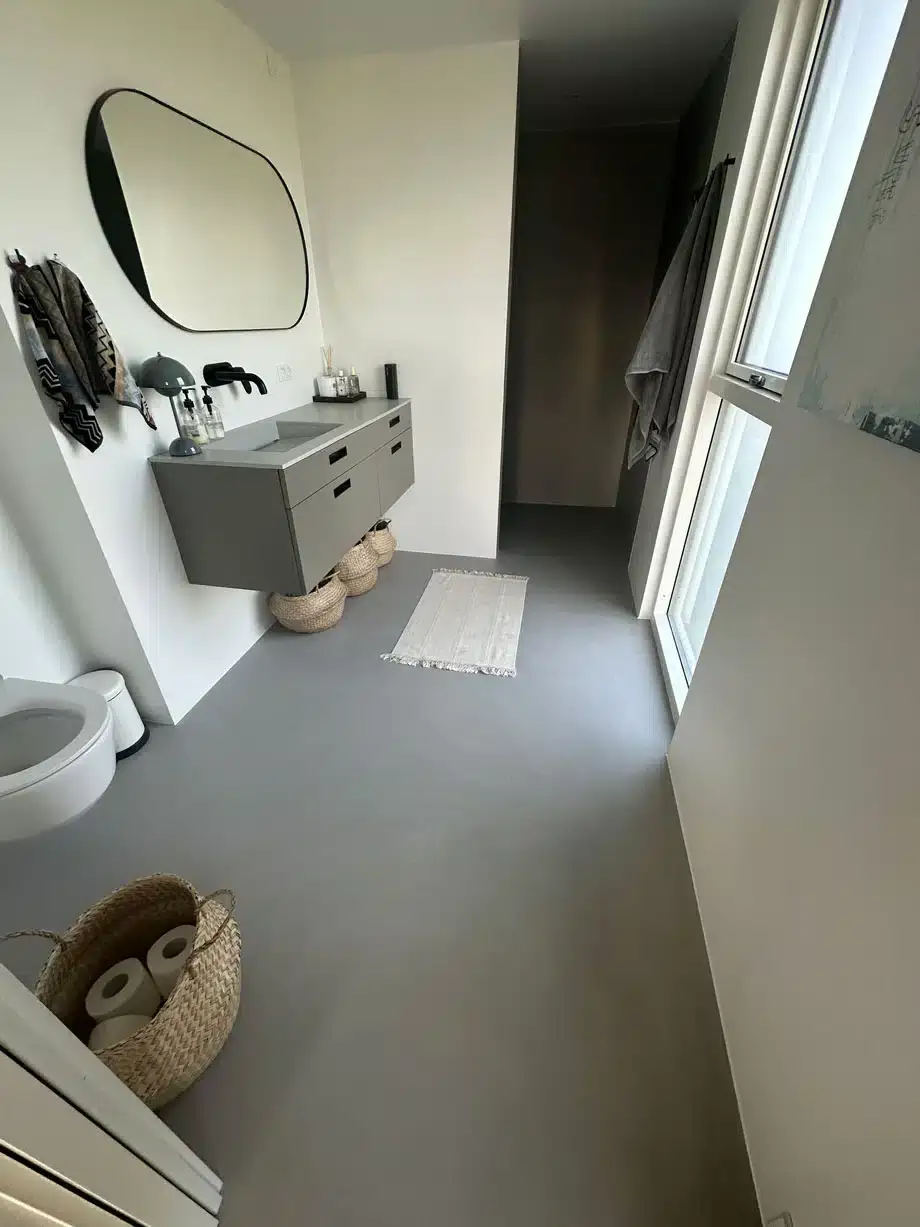 Epoxygulve er et godt valg til badeværelser på grund af deres holdbare og vandafvisende egenskaber. Det kan modstå ridser, revner og andet slid bedre end de fleste traditionelle gulvmaterialer, hvilket gør det ideelt til våde miljøer som badeværelset. Den blanke finish tilføjer også et elegant udseende til rummet, hvilket får det til at føles mere moderne og stilfuldt. Desuden er epoxybelægningen ikke-porøs og modstandsdygtig over for skimmel og bakterievækst, så det er et godt valg til badeværelser, hvor hygiejne er af største vigtighed.